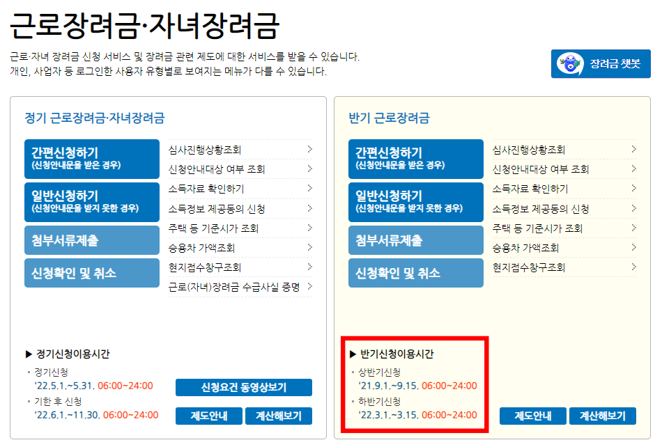 상/하반기로 나눠 6개월간의 소득을 파악하고, 해당 연도 소득을 기준으로 반기별 근로장려금을 신청하고 지급받을 수 있습니다.