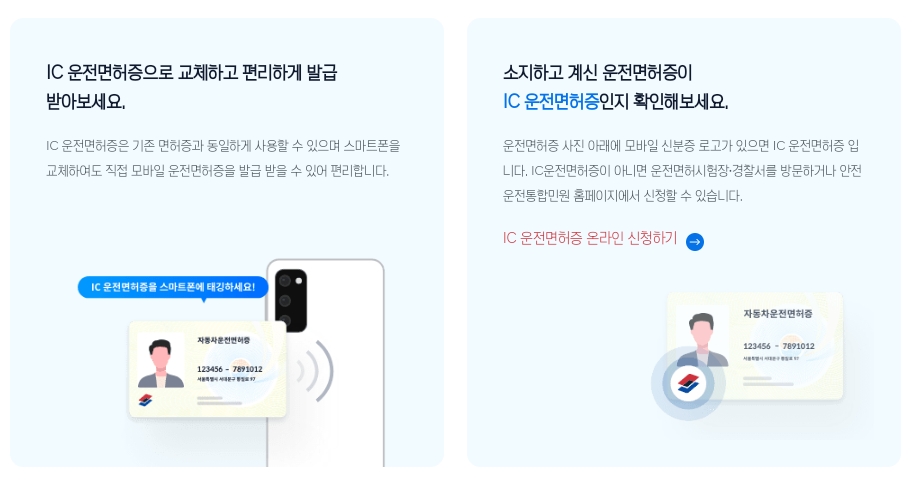 IC 운전면허증으로 모바일 운전면허증을 발급받기 위해선 우선 현행 운전면허증을 IC 운전면허증으로 교체해야 합니다.