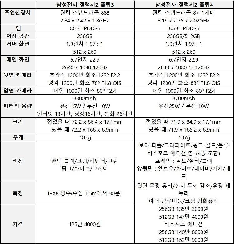 | 저장용량 | 256 / 512 / 폴드는 1TB까지 | |